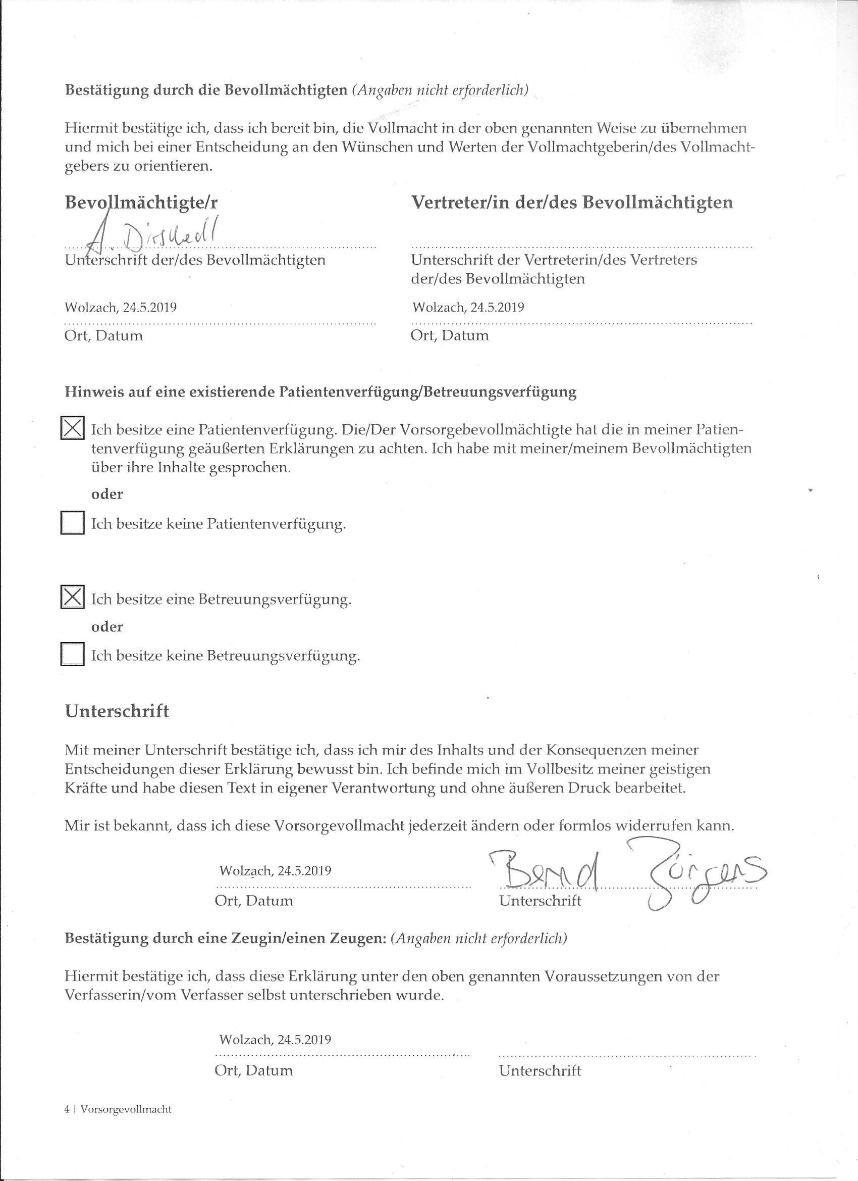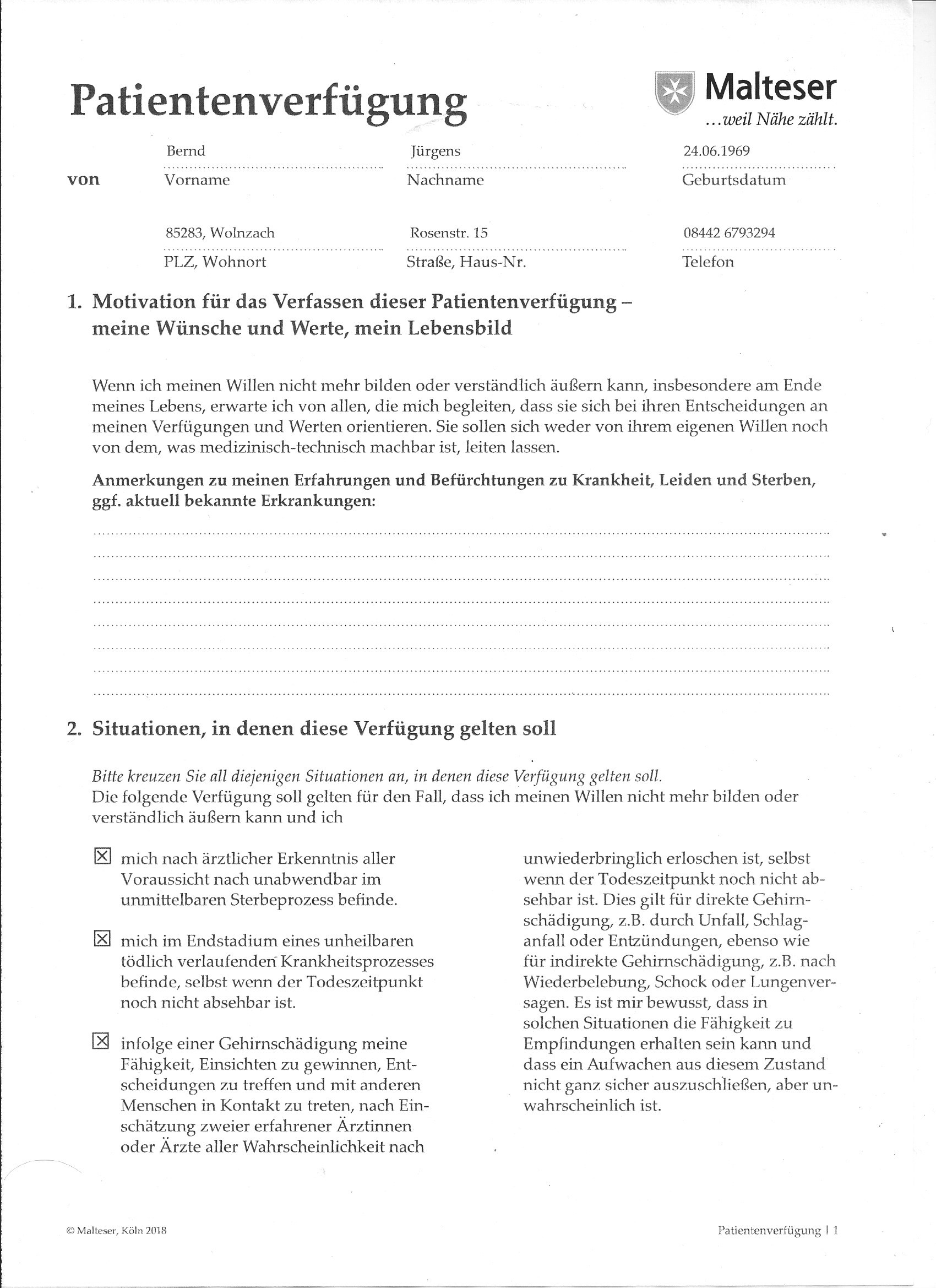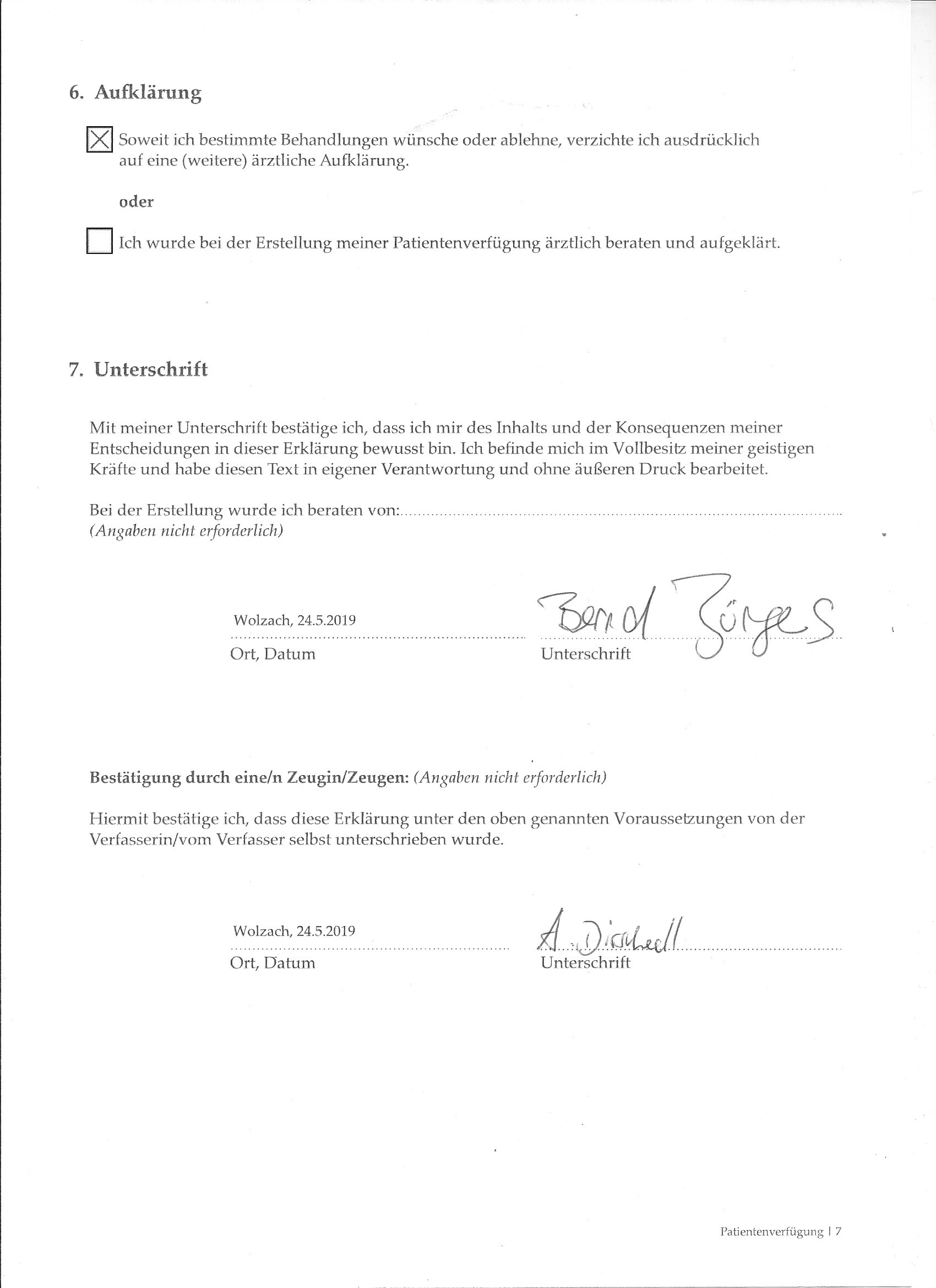 Patientenverfügung Bernd Jürgens Stand 24. Mai 2019