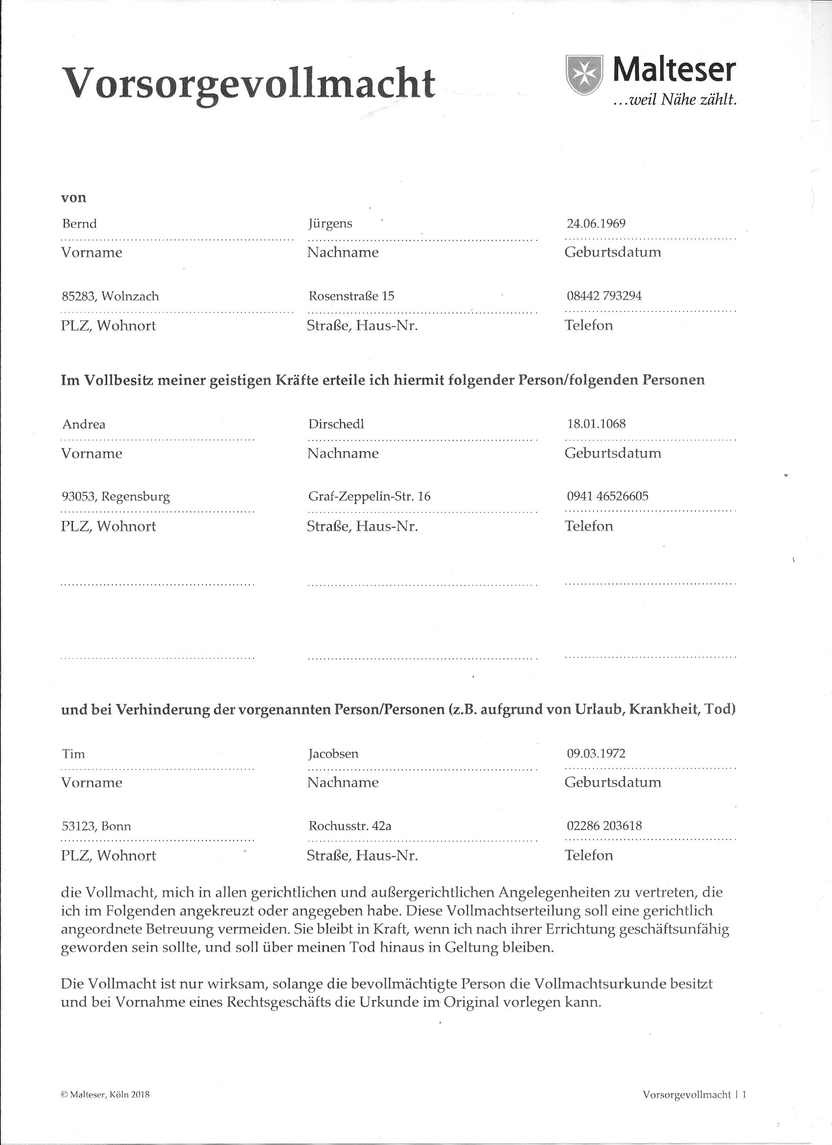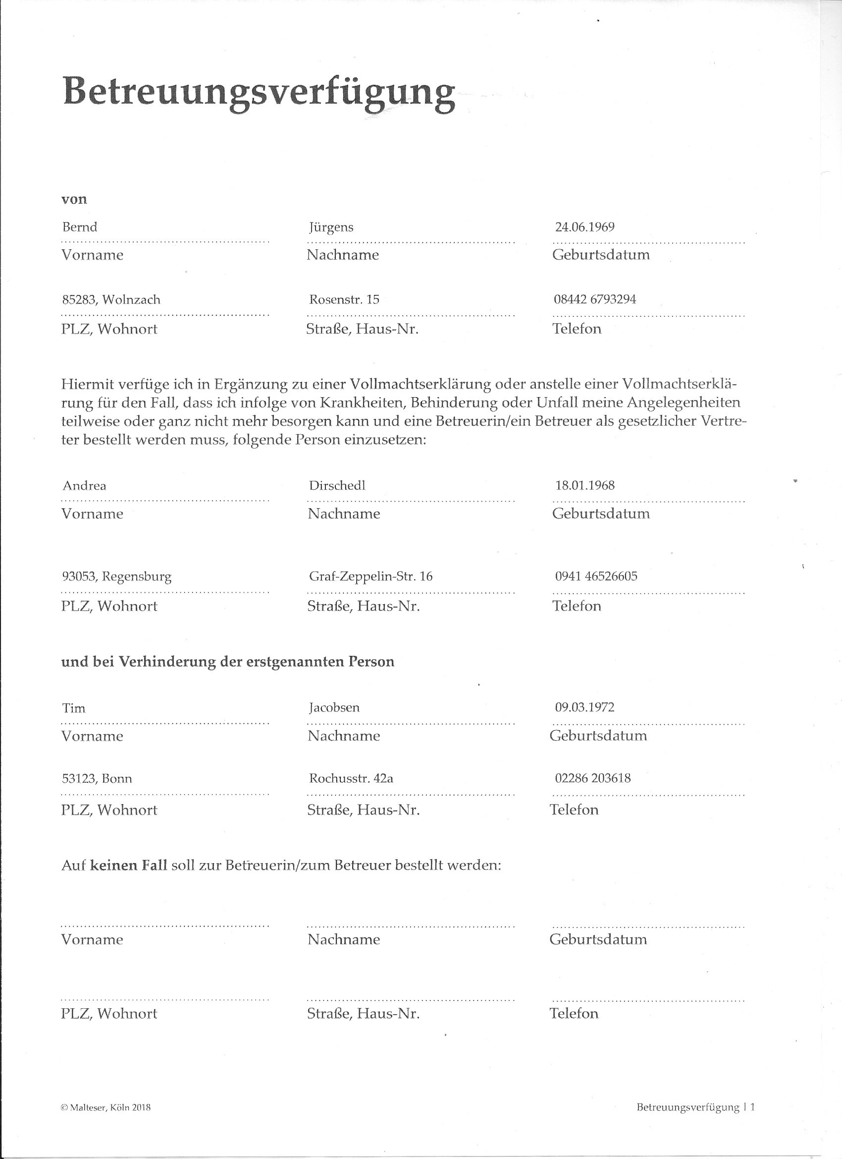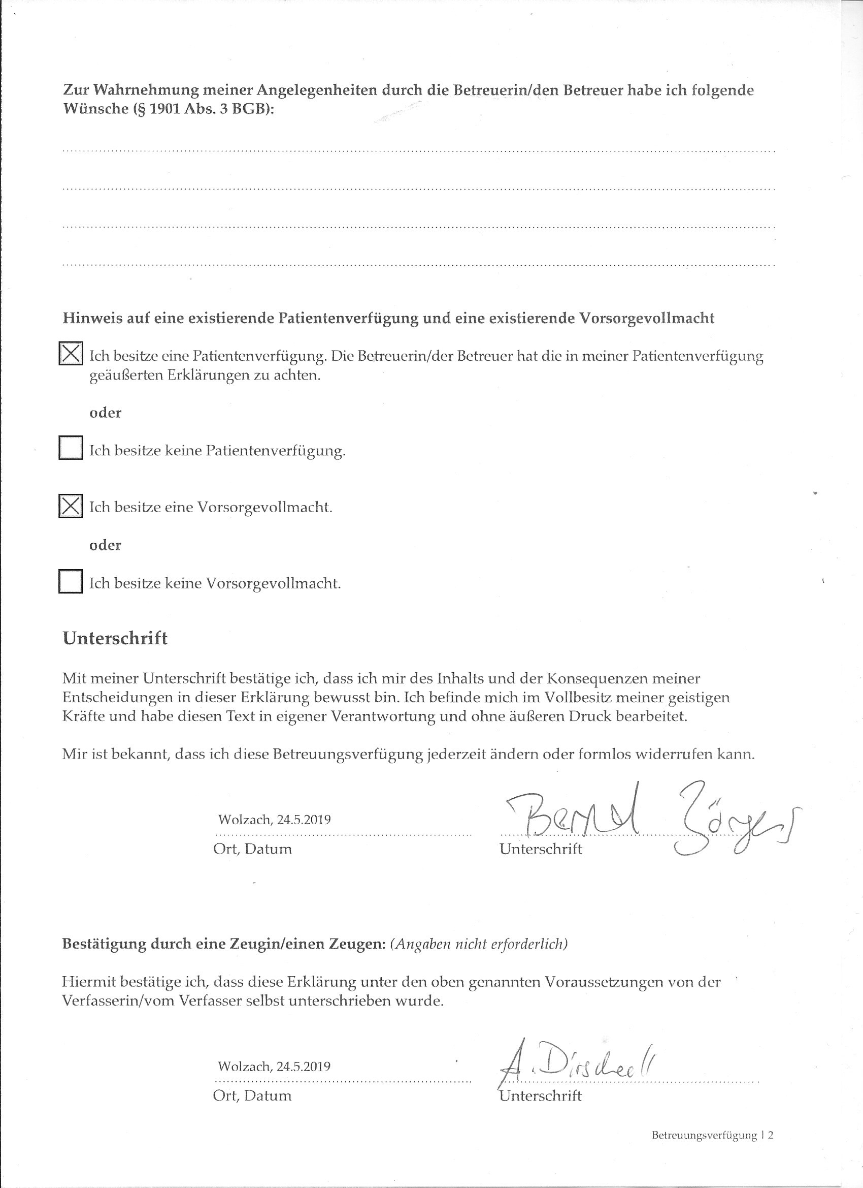 Patientenverfügung Bernd Jürgens Stand 24. Mai 2019